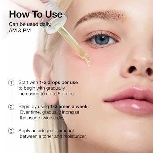 | Feature | [How to Use] Start with 1-2 drops per use to begin with gradually increasing to up to 5 drops. Please start slow by using 1-2 times a week and gradually increase to twice daily, always finishing with sunscreen for daytime use. |