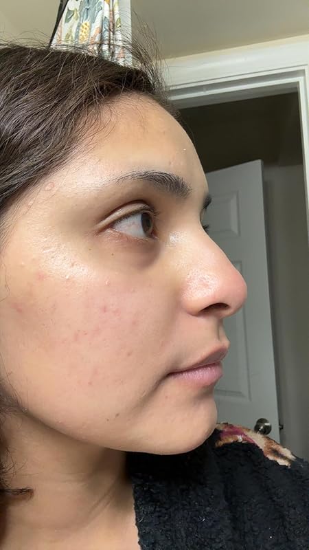 I forgot to take a photo when I first started this product but it’s 5 days in between the before and after. My acne has gotten A LOT better and the redness is starting to go away. I apply it after using La Roche-Posay normal to oily skin toleriane purifying foaming cleanser. ❤️ Super easy to use although it is smaller than I was expecting but a little goes a long way for sure. There is a smell to it, it kind of reminds me of unscented sunscreen. When you apply it, it kinda feels greasy but your skin soaks it in and it gives you a nice glow. Which is funny because my husband didn’t know I started this skin care routine and said I had a glow. I have tried WAY too many to count skin care products and this is the absolute winner from me. I would definitely recommend this to anyone:)