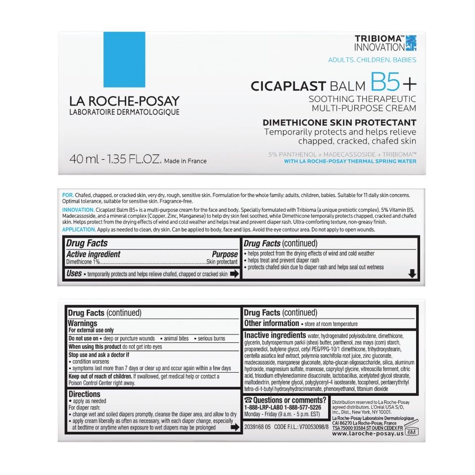 La Roche-Posay Cicaplast Balm B5, Healing Ointment and Soothing Therapeutic Multi Purpose Cream for Dry & Irritated Skin, Body and Hand Balm, Baby Safe, Fragrance Free : Beauty & Personal Care